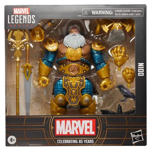 Bring the excitement and wonder of the Marvel Universe to your collection with Hasbro Marvel Legends Odin figure! In celebration of Marvel's 85th anniversary, this collectible figure is detailed to look like the character from Marvel's Thor comic books. 6-inch scale Marvel figures are fully articulated with poseable head, arms, and legs. Marvel action figure set comes with 8 accessories, including alternate hands, 2 helmets, 2 ravens, staff and sword. Collectible action figure features a soft goods cape and stands at 8.2 inches tall. Hasbro Marvel action figures' 6 inch scale make them great for posing and displaying in fans' collections. Reimagine Marvel comics-inspired scenes on your shelf with Marvel Legends action figures. Ages 4 and up.