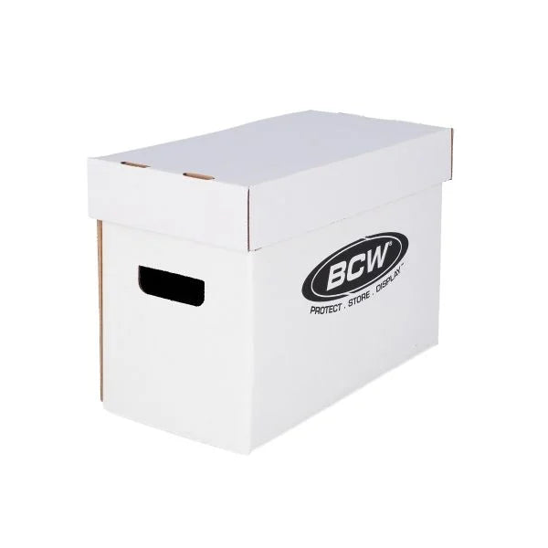 The BCW Storage Box is the highest quality, most competitively priced cardboard storage box on the market today. They are constructed of white corrugated paper and have a 200 lb. test strength. Use this box to store and protect all your valuable, collectible comics.