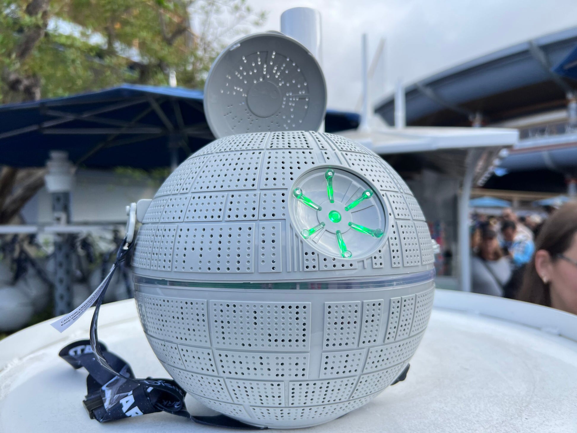 The bucket is shaped like the iconic Star Wars superstation with a flat base and light up features!