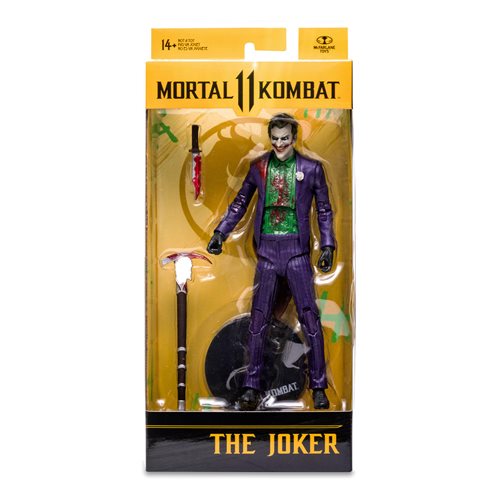 Based off his Killer Smile Skin in Mortal Kombat 11, this incredibly detailed Joker action figure features a blood splattered design. This Mortal Kombat Wave 8 Bloody Joker 7-Inch Scale Action Figure is designed with ultra articulation with up to 22 moving parts for a full range of posing. The Joker includes a knife, his cane, and a display base. The figure is showcased in Mortal Kombat themed window box packaging.